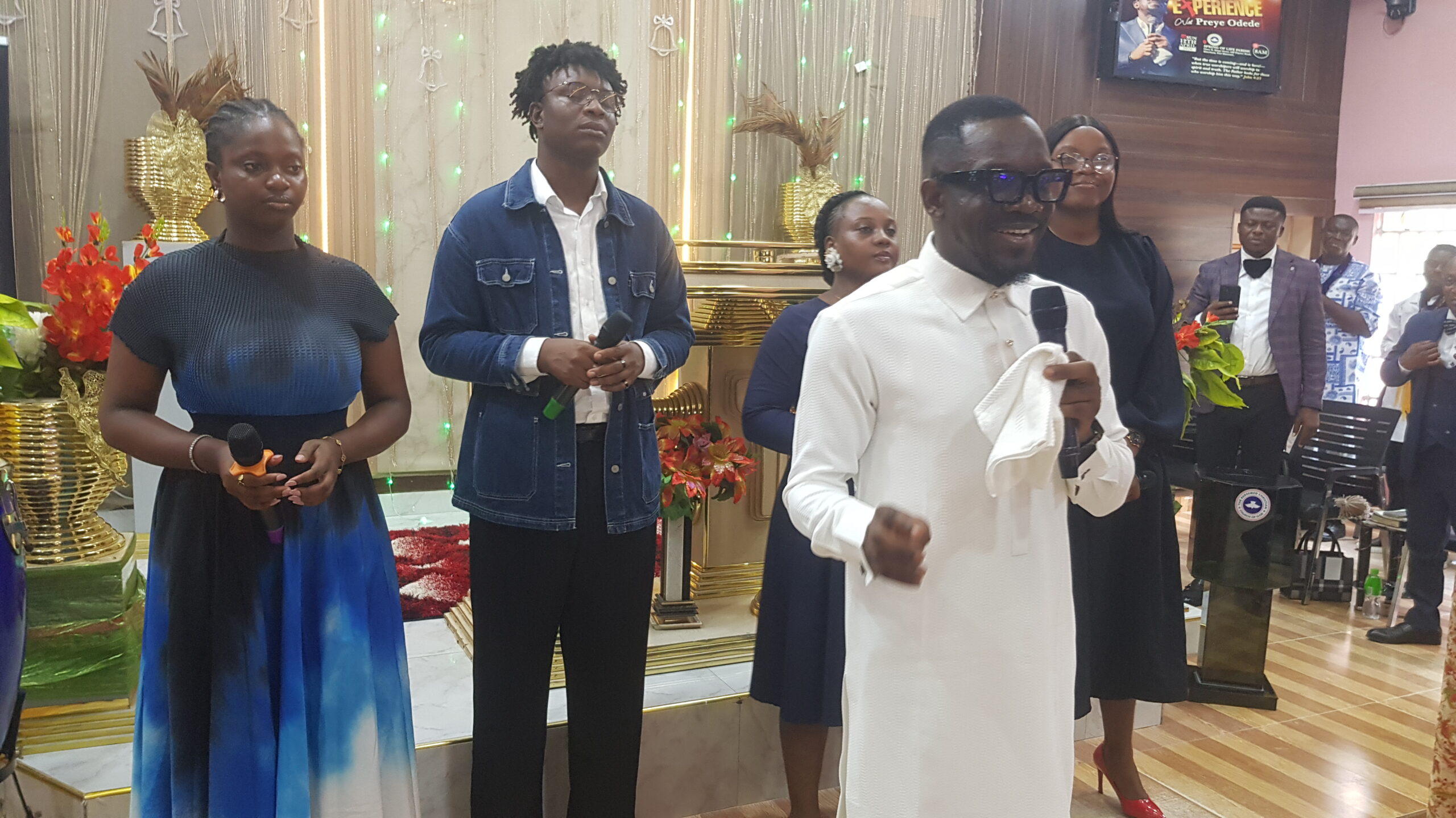 Popular gospel singer Preye Odede, today performed to the delight of guests at the dedication of Mr. Philip Omenuta Emil-Inyang’s daughter in Port Harcourt, Rivers state.